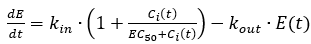毒性效应的动态变化:在整个大气转化、吸入、分布、代谢和清除过程中,PM2.5成分(i)的浓度随时间而变化,则其产生的毒性效应(E)也会发生动态变化。 式7的左侧描述了标准化生物效应(E)随时间(t)的变化,右侧kin和kout分别表示E随时间增加和减少的速率,EC50表示组分诱发50 %最大生物效应所对应的浓度。多组分混合物在体内的联合效应可进一步通过独立作用模型量化。