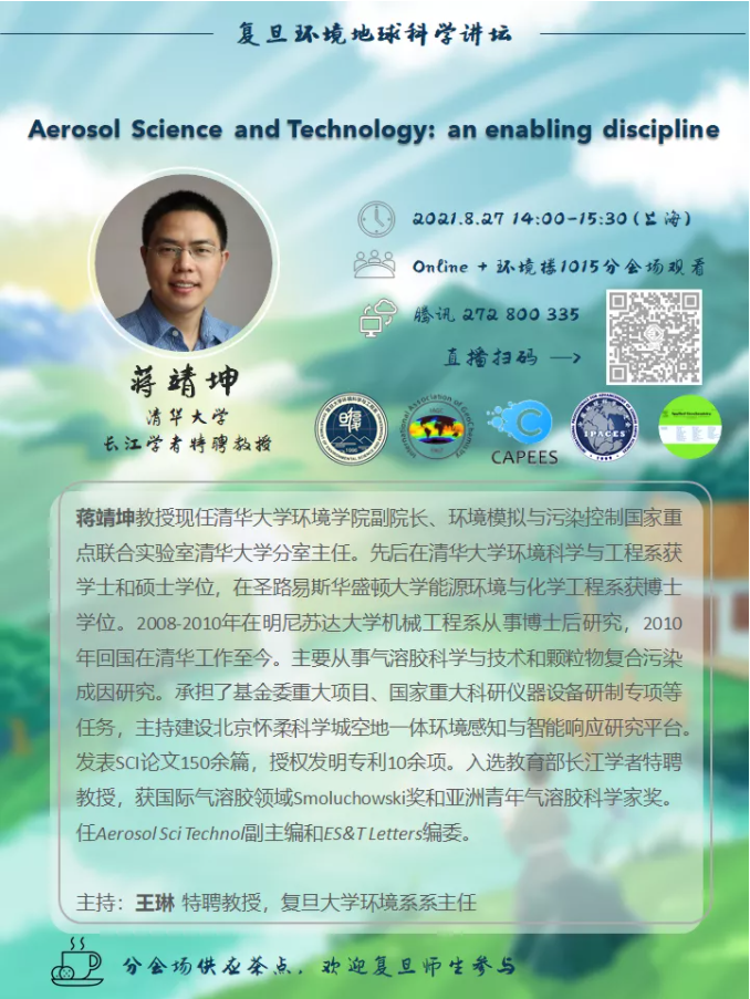 这是复旦研究生FIST课程系列讲座第一次以大气环境科学为主题。因此,特别邀请成人导航 环境系系主任王琳教授担任主持。我们的长远目标是依托学校、院系、学会、期刊,多线联动,覆盖环境地球科学的各分支和交叉学科,建设充满活力的国际学术交流舞台。