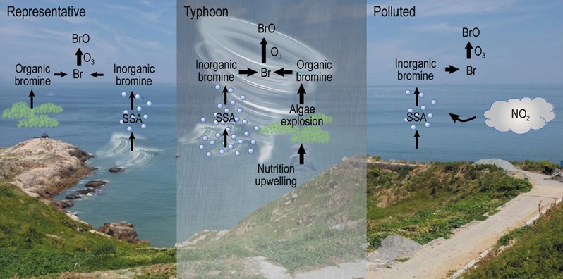 这项研究发现了类似于“极地溴爆炸”的现象,即极地气旋活动通过自催化化学反应促进了活性溴的释放。此前的研究在极地地区已经观察到这一点,但本研究扩展了对活性溴的来源和影响的理解,包括台风等极地以外气旋的影响。本研究通过强调自然天气现象与人为污染之间的复杂相互作用,强调了在预测大气条件和制定环境政策时,需要综合考虑这些因素。该研究不仅推进了我们对大气科学的了解,也呼吁在未来的气候和空气质量策略中整合极端天气事件和空气污染相互作用。