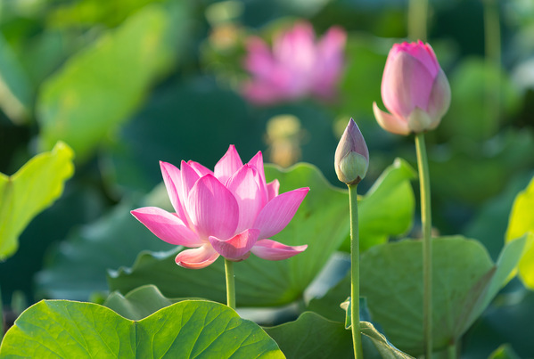 莲科莲属;多年生水生草本花卉,地下茎长而肥厚,有长节,叶盾圆形;藕和莲子能食用,莲子、根茎、藕节、荷叶、花及种子的胚芽等都可入药。
