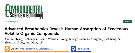 论文信息:Huang, Y., Z. Cen, W. Wang, et al., Advanced Breathomics Reveals Human Absorption of Exogenous Volatile Organic Compounds. Environ Sci Technol, 2025. 10.1021/acs.est.5c01777