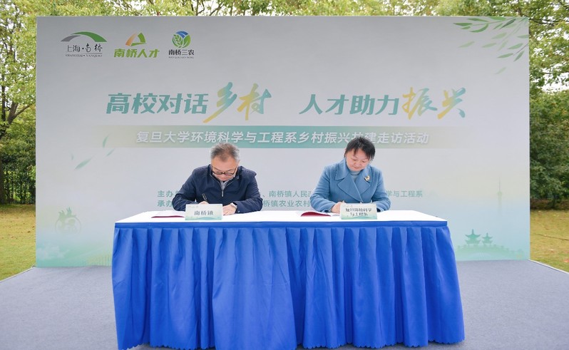 环境系党委书记梅鲜,副主任安东,副主任马臻,党委委员张真,工会主席雷一东及系相关教师队伍赴南桥镇开展党建共建走访。南桥镇党委副书记王建恩,南桥镇党委委员甘德富,南桥镇副镇长何平及相关工作负责人出席走访活动。活动中,成人导航 党委与南桥镇党委签署党建共建备忘录,并共同为园引才工作站、乡村振兴实践基地揭牌。