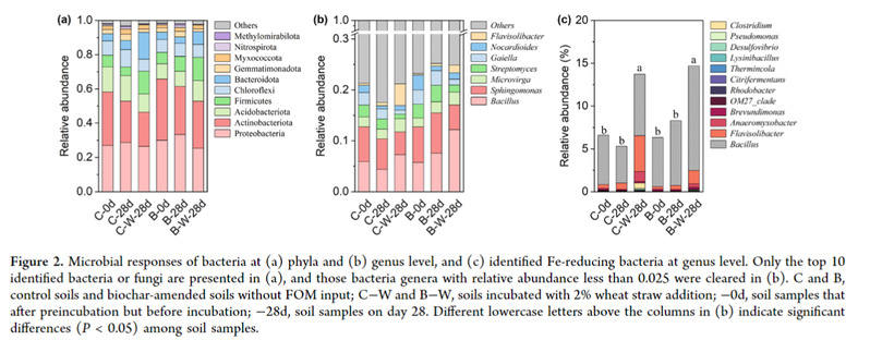 团队以生物炭改良的旱地农田表层土壤为对象,分析了多种活性物种(铁和羟基自由基)、有机碳库与微生物群落及功能的关系,发现微生物的碳利用效率和胞外电子传递能力的显著提高,驱动了土壤好氧-厌氧过渡区域内异化铁还原及类芬顿反应。