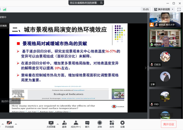 2021年12月22日晚,中国科学院生态环境研究中心陈利顶研究员(杰青)在成人导航 余兆武老师的邀请下进行了题为“城市景观演变的生态环境效应”的学术报告,作为成人导航 25周年系庆系列报告。陈利顶研究员是城市与区域生态国家重点实验室主任。现任政协第十三届全国委员会人口资源环境委员会委员,国际景观生态学会副主席;中国生态学会副理事长。