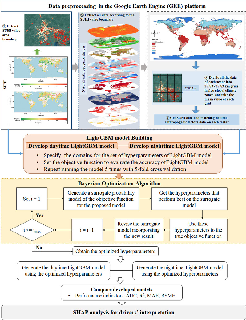 2022年10月7日,成人导航 王祥荣教授城市生态学研究团队在国际著名学术刊物Environmental International上在线发表了题为“Natural-anthropogenic environment interactively causes the surface urban heat island effect variations in global climate zone”的研究论文。气候变化和城市绿地等自然因素对城市热岛影响显著,这可能主要导致全球不同自然气候带的热岛指数差异和季节变化。区域地理和气候尺度对于评估热岛缓解工作至关重要。本文利用先进的可解释机器学习-LightGBM和SHAP算法,基于栅格尺度精细化分析了全球不同气候区地表近10000个城市的热岛强度(SUHI)的昼夜异常,探讨了自然-人为驱动因素对昼夜城市热岛强度的贡献/交互效应。研究发现除冬季日间,其他所有时间段的SUHII主要受降水量的影响。夜间SUHII的关键驱动因子虽然与日间相似,但植被指数对夜间SUHII的作用减弱,使得人为热排放量成为降水量和人口密度之后的第三大关键因素。降水量与日间SUHII的关系在不同条件下呈现正负反馈,而人口密度增加通常导致SUHII上升,但这一效应受到降水和人类发展指数的调节。此外,植被指数(EVI)与SUHII之间的关系表明,植被覆盖度到达某一阈值(EVI ≈ 0.38)后可以有效减缓日间SUHII,当EVI超过0.2,增加的降水量强化了EVI对SUHII的减缓作用;反之,当EVI低于0.2,降水量的增加反而降低了EVI对日间SUHII减缓的效果。此外,高GDP地区的夜间SUHII较低,显示出与人类发展水平的正向关联。人类发展指数的提高,通过技术创新和产业结构优化,有助于减少人为热排放,对夜间SUHII产生减缓作用。本文的研究为缓解SUHI提供了新的思路,如通过灌溉、考虑气候背景增加绿地面积/强度、改变经济发展阶段等。在最发达的城市中,在难以增加植被覆盖的地方,减少人为热通量排放、增加人均国内生产总值和控制人口规模也可能有助于缓解SUHI。这些结果为在特定的自然或社会经济环境下改善旨在为世界城市降温的努力提供了指导,特别是在大量没有从深入的观察或建模研究中受益的大都市中。