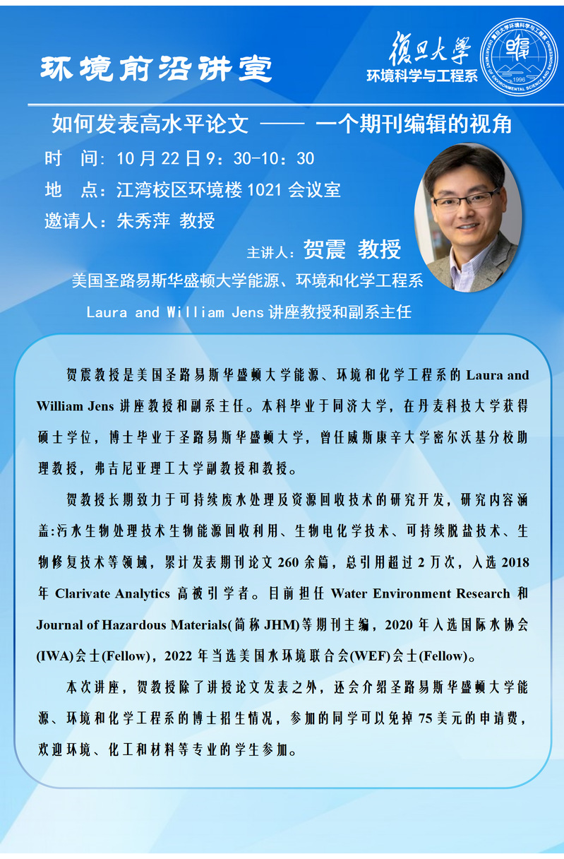 环境前沿讲堂|如何发表高水平论文——一个期刊编辑的视角