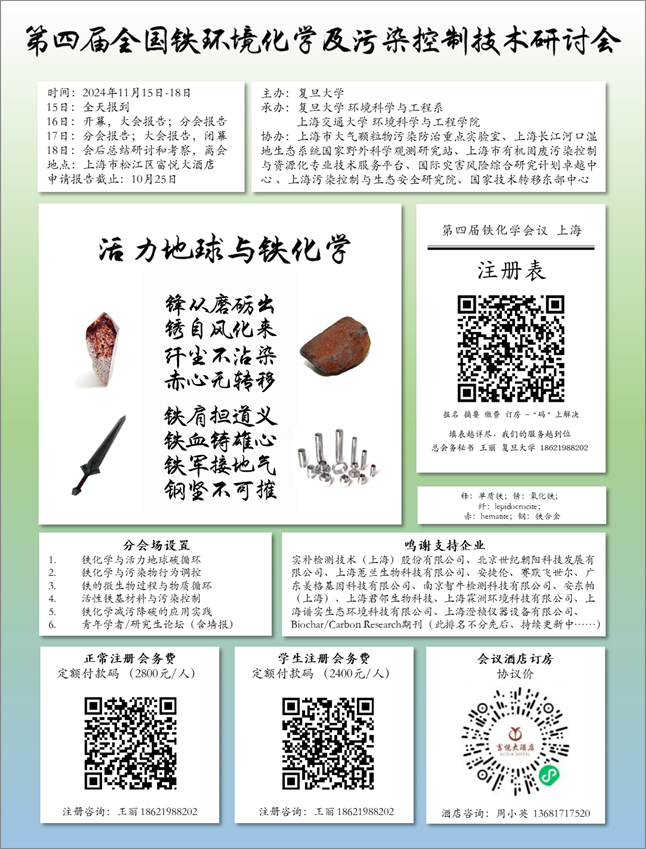 团队积极为学科共同体服务,长期承担国际地球化学协会会刊Applied Geochemistry的编辑部工作,目前正代表成人导航 筹办即将于2024年11月15日至18日在上海举行的第四届全国铁环境化学及污染控制技术研讨会,热忱欢迎各界朋友莅临。