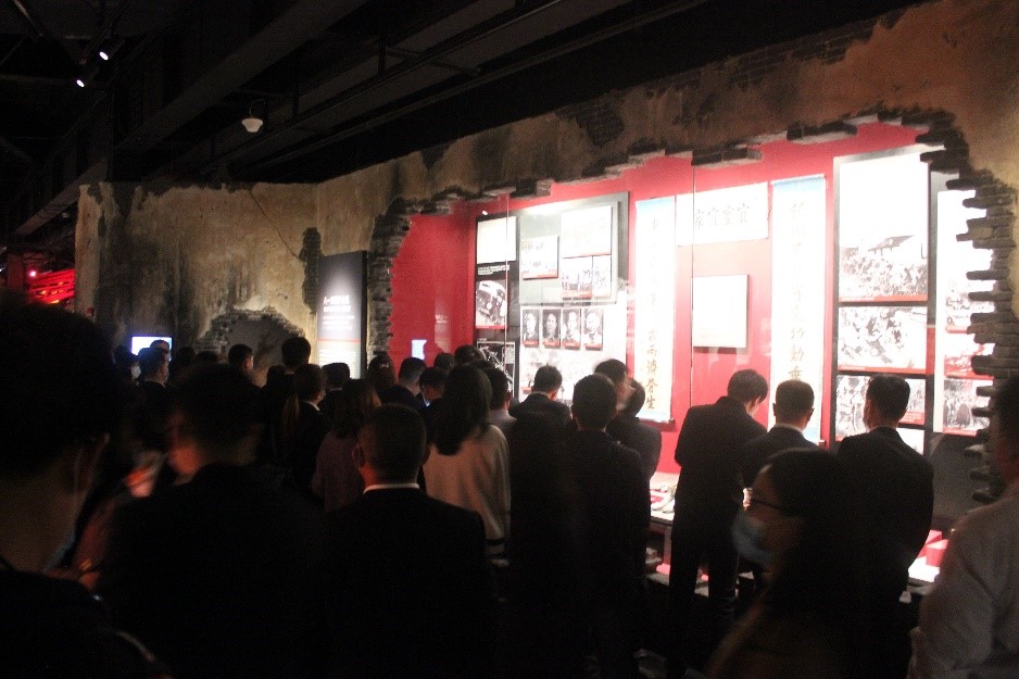 《艰苦卓绝——上海抗战与世界反法西斯战争》主题展真实再现了上海抗日战争以及世界反法西斯战争的历史与记忆,讲述了上海在中国人民抗日战争以及世界反法西斯战争中作出的巨大牺牲和伟大贡献。《东京审判》绘画图片展则展示了从美国国家档案馆、日本国立公文书馆等收藏机构及相关人员家属中征得的两百余张珍贵相片,完整讲述了二战后同盟国对日审判从构想到实践的过程。在讲解员的生动演绎下,全体党员共同重温了那一段艰苦卓绝、波澜壮阔的峥嵘岁月,共同感悟到以爱国主义为核心的伟大民族精神和抗战精神。