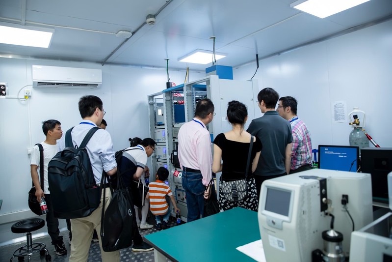 合影结束后,一些校友及家属在相关老师和学生志愿者的带领下,参观了江湾环科楼部分实验室。校友们来到大气观测超级站,饶有兴致地了解了大气站的建成、发展状况以及大气组分自动采样分析装置等设备的运行原理。校友一行还来到成人导航 气溶胶及飞沫实验室,参观了成人导航 自行开发研制的全自动气溶胶/VOCs有机组分分析仪、生物气溶胶采样器等设备。校友们纷纷回忆了自己在环科的求学经历,对环科近年来取得的成绩表示高度认可,感叹成人导航 飞速发展的同时,对学弟学妹们也寄予了深切期望。