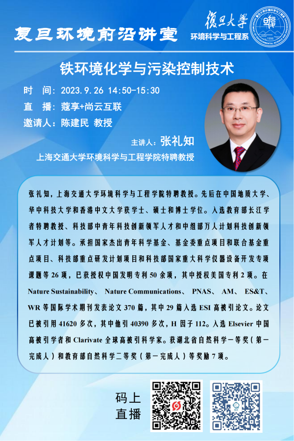 【复旦环境前沿讲堂】铁环境化学与污染控制技术