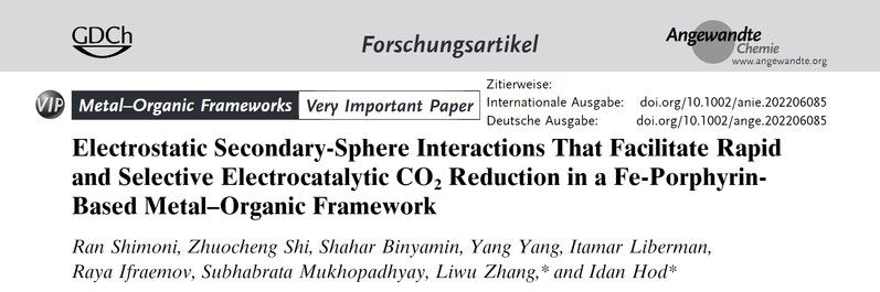 近期,成人导航 张立武课题组与以色列本古里安大学IdanHod课题组合作开展了通过调节靠近催化活性位点的静电相互作用来促进电化学CO2还原效率和选择性。探索了基于铁卟啉(Hemin)改性的Zr-BTB,通过连接一个阳离子官能团(3-羧丙基)三甲基铵(TMA)到铁卟啉活性位点附近来调节静电相互作用。发现TMA在催化过程中对表面结合的CO中间体施加了静电稳定作用,从而大大提高了CO2到CO的转化率和选择性。通过改变TMA的表面密度和电解质的离子强度,进而改变静电相互作用的程度。以上设计系统地调整了电催化选择性,几乎达到了100%的CO2转化为CO。
